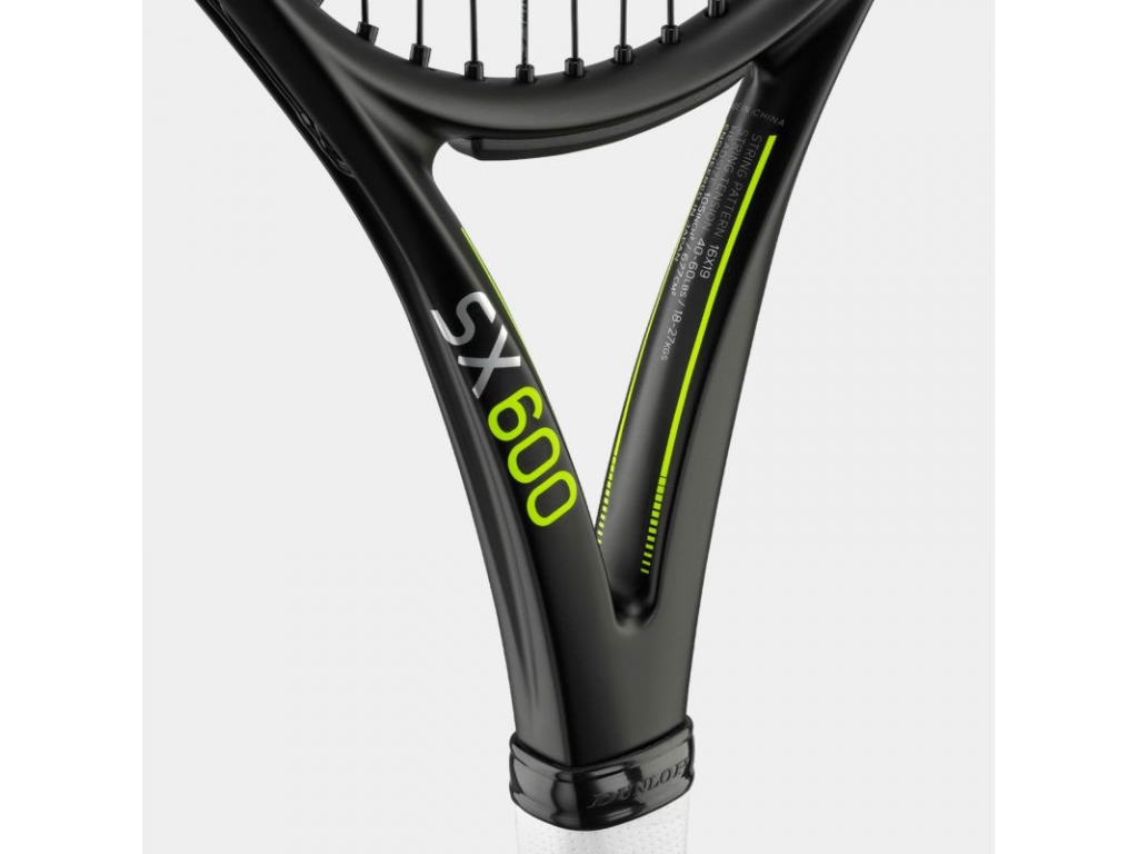 Maximálna razancia a spin s kontrolou a extra komfort. Dunlop SX 600 ponúka väčší sweetspot - zásahovú plochu - vďaka väčšej veľkosti hlavy a v kombinácii s nižšou hmotnosťou umožňuje veľmi ľahkú ovládateľnosť na kurte. Je ideálna pre hráčov, ktorí zasahujú lopta krátkym až normálnym švihom a potrebujú vo svojich úderoch generovať vysokú razanciu. Nová technológia Spin Boost Vám umožňuje maximálne ovládať rotáciu, keď ju potrebujete, bez toho aby ste obetovali razanciu úderu. Maximálne ovládaj každý úder.