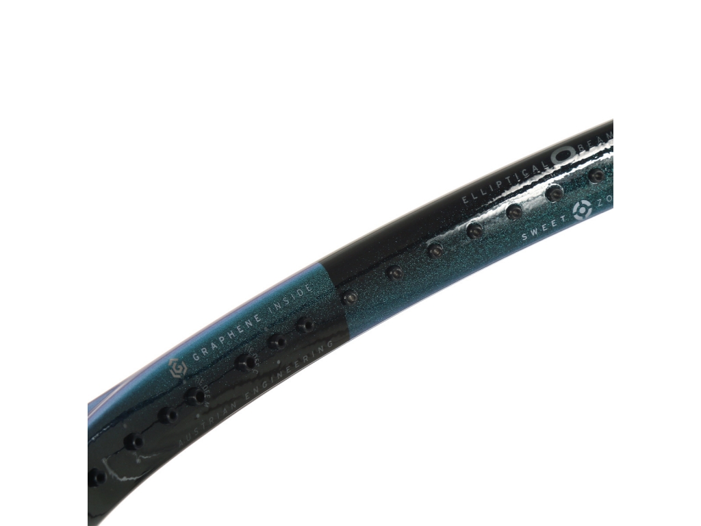 GRAPHENE INSIDE - Grafén sa nachádza v ráme na polohách 3 hodiny, 9 hodín a 12 hodín, aby spevnil rám, poskytol väčšiu stabilitu a lepší prenos energie z rakety na loptičku pri údere.