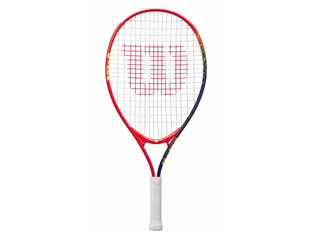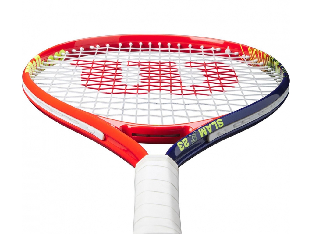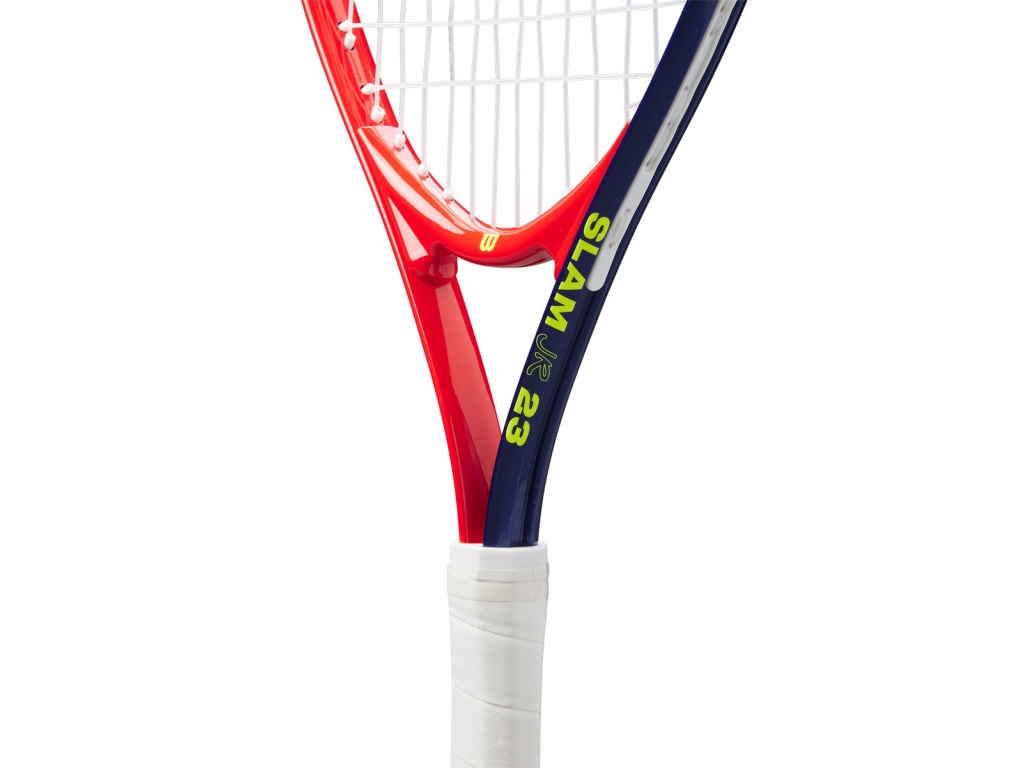 Detská tenisová raketa Slam 23, vhodná pre juniorov od 7 do 9 rokov s výškou od 114 do 127 cm. Raketa je vyrobená z hliníku, takže je dostatočne pevná a odolná proti nárazom, s výpletom váži len 185 g. Vďaka tejto ľahkej váhe je raketa ľahko ovládateľná, umožňuje veľmi ľahký švih a tiež nezaťažuje zápästie malých hráčov.