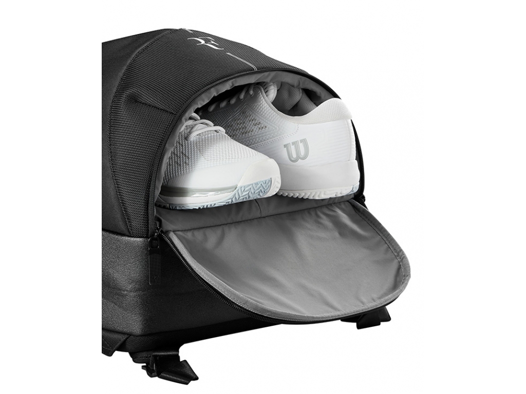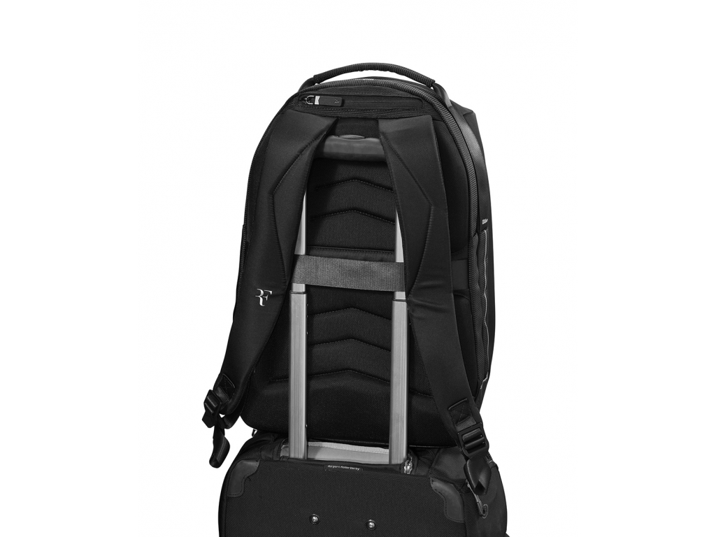 Tenisový ruksak Wilson RF Backpack prináša jednoduchosť tréningu a cestovania. Dizajn je inšpirovaný majestátnymi švajčiarskymi Alpami, témou, ktorá sa odráža v celej kolekcii Rogera Federera. Ruksak s mäkkým polstrovaným chrbtom a popruhom, ktorý sa pripevní k vašej batožine pre plynulejší presun. Ponúka dostatok miesta až pre dve rakety spolu s priehradkou na topánky a vreckom na drobnosti podšitým fleecom na drobnosti. Logo RF na zipsoch na počesť 20-násobného majstra sveta.
