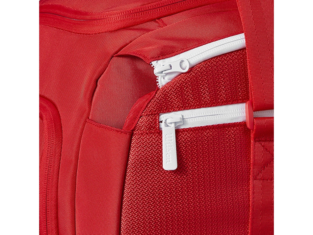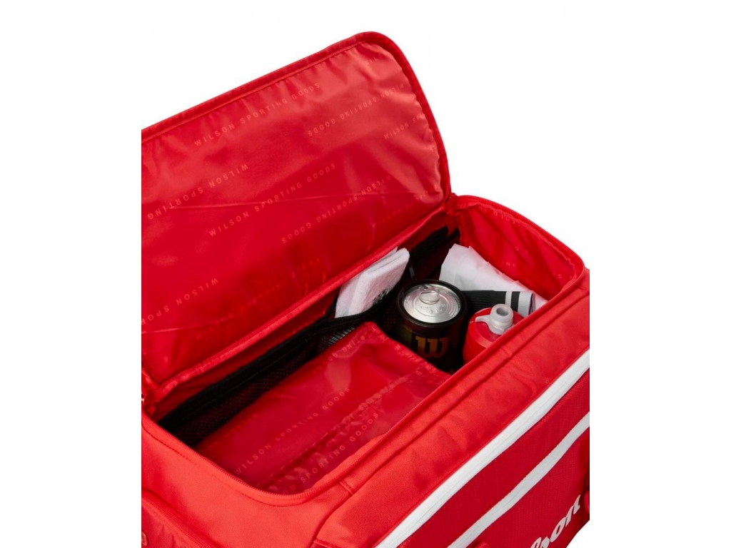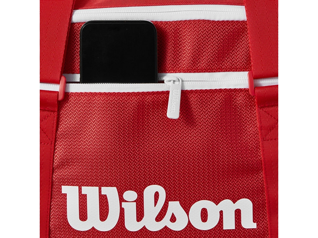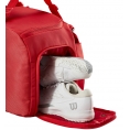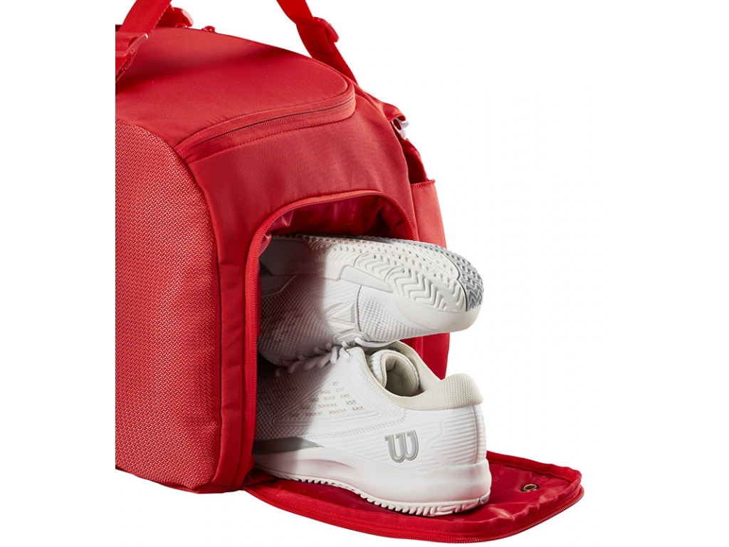 Wilson Super Tour Red Small Duffle vyrobené v majestátnej červenej, najikonickejšej farbe Wilson, sú ideálne pre náruživých hráčov, ktorí potrebujú extra nosnosť pre extra výstroj a topánky. Perfektný spoločník na turnajové cesty k jednej z tašiek na rakety Super Tour Red, je to tiež skvelá alternatíva na tréningy, keď hráči radšej cestujú na kurty naľahko. Okrem vyhradenej priehradky na topánky a bočného vrecka na menšie predmety má duffle novú oddelenú priehradku určenú na tenisovú raketu. Polstrované rukoväte umožňujú pohodlné a ľahké prenášanie.