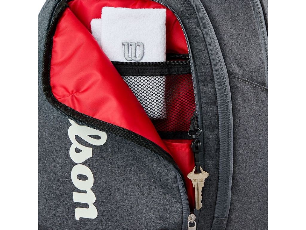 Wilson Tour Backpack je navrhnutý tak, aby poskytoval maximálny komfort pre hráčov! Je vystužený s množstvom vreciek a priehradiek, ideálny pre pohodlné nosenie všetkého, čo budete potrebovať na veľký zápas.