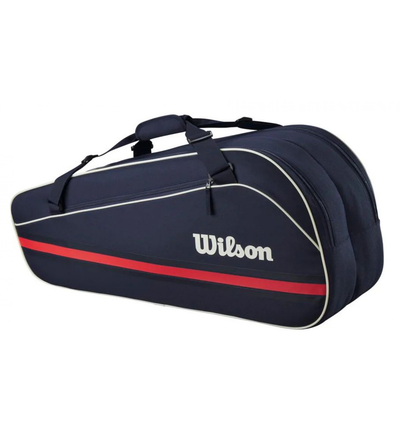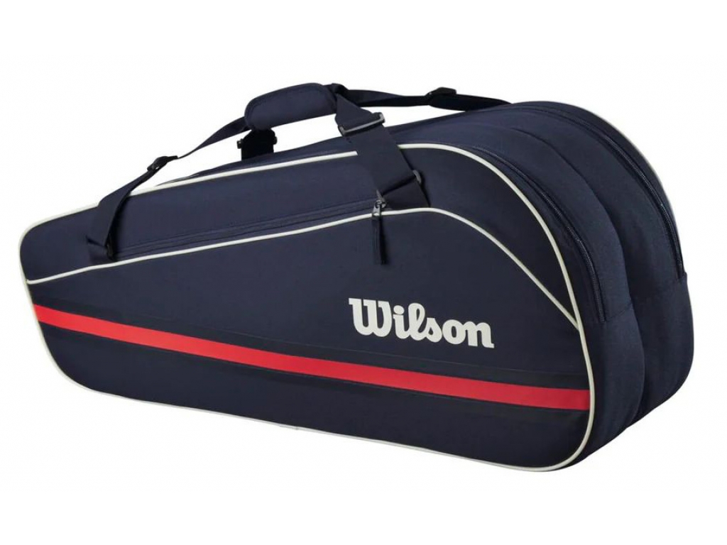 Wilson Team 6 Pack z novej kolekcie bagov je navrhnutá tak, aby poskytovala maximálny komfort pre hráčov! Tašky Wilson Team majú množstvo vreciek a priehradiek, aby sa do nich vošlo všetko, čo nie len turnajový hráči budú potrebovať na kurte aj mimo neho. Zmestí sa do nej až 6 rakiet bez obalu.