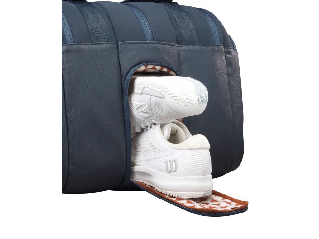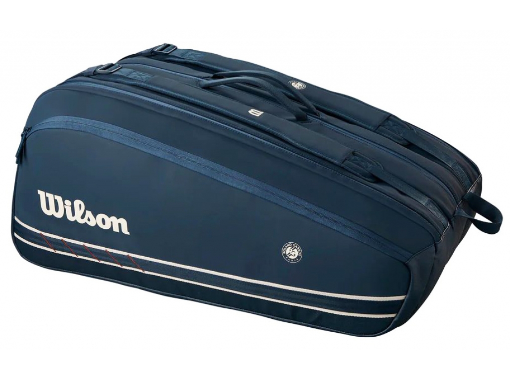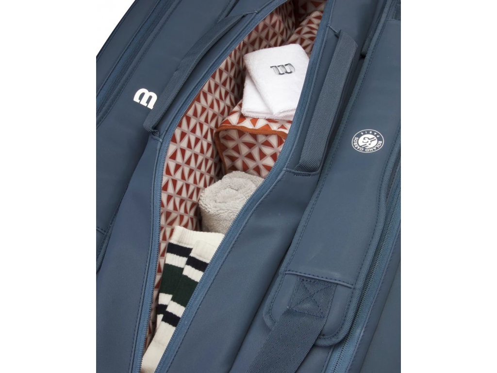 Wilson Roland Garros 2025 Session Soiree Super Tour 15PK z novej kolekcie vytvorený pri príležitosti antukového Grand Slamu Roland Garros. Je navrhnutý tak, aby poskytoval maximálny komfort pre hráčov! Tašky Wilson Super Tour majú množstvo vreciek a priehradiek, aby sa do nich vošlo všetko, čo nie len turnajový hráči budú potrebovať na kurte aj mimo neho. Zmestí sa do nej až 15 rakiet bez obalu.