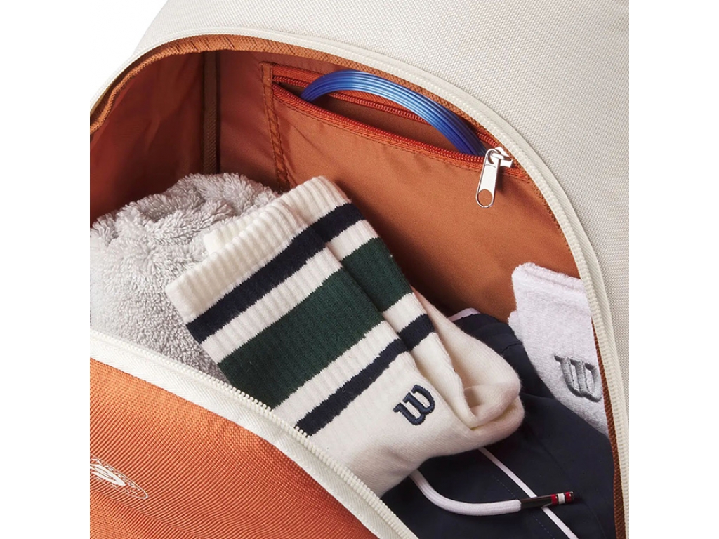 Wilson Roland Garros Backpack je navrhnutý tak, aby poskytoval maximálny komfort pre hráčov! Je vystužený s množstvom vreciek a priehradiek, ideálny pre pohodlné nosenie všetkého, čo budete potrebovať na veľký zápas.
