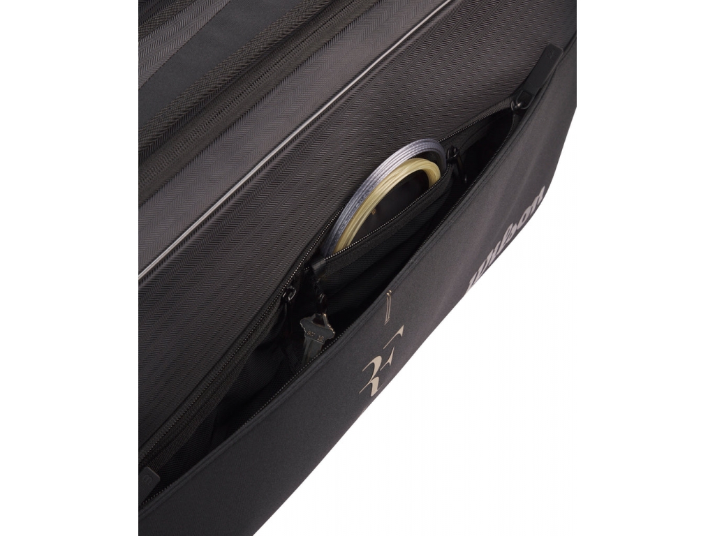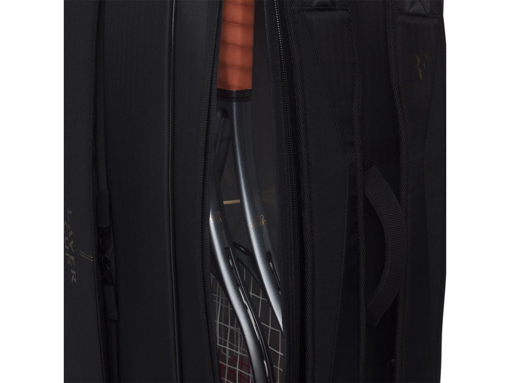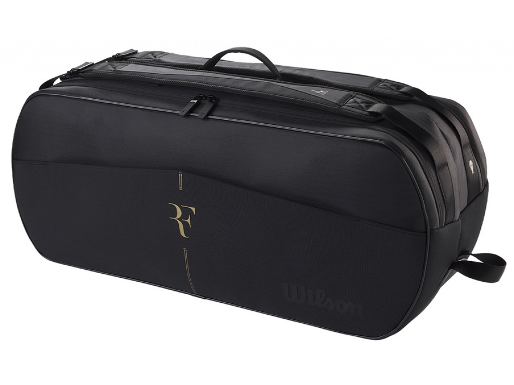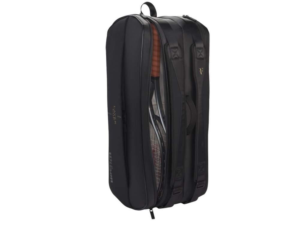 Špičkové vybavenie si vyžaduje prvotriedne vybavenie. Taška na rakety Wilson RF Tournament 9PK s elegantným čiernym dnom a zlatým logom Laver Cup 2025 a Rogera Federera „RF“ kombinuje luxusný vzhľad s efektívnym dizajnom, ktorý slúži potrebám tenisového hráča. Táto profesionálna taška pripravená na kurt je priestranná a pojme až deväť rakiet a obsahuje bočné vrecká na menšie predmety a cennosti. Podšívka Thermoguard udržiava struny správne napnuté a rámy rakiet chránené pred extrémnymi teplotnými zmenami. Prémiové detaily, ako sú úchytky zipsov a remeselné povrchové úpravy, robia z tejto tašky jedinečnú triedu. Zmestí sa do nej až 9 rakiet bez obalu.