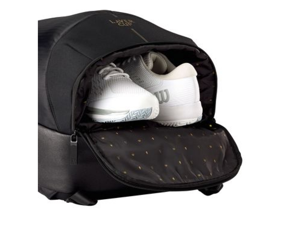 Tenisový ruksak Wilson RF Laver Cup Edition prináša jednoduchosť tréningu a cestovania. Dizajn je inšpirovaný majestátnymi švajčiarskymi Alpami, témou, ktorá sa odráža v celej kolekcii Rogera Federera. Ruksak s mäkkým polstrovaným chrbtom a popruhom, ktorý sa pripevní k vašej batožine pre plynulejší presun. Ponúka dostatok miesta až pre dve rakety spolu s priehradkou na topánky a vreckom na drobnosti podšitým fleecom na drobnosti. Logo RF na zipsoch na počesť 20-násobného majstra sveta. Táto taška je na oslavu premiérovej udalosti dokončená značkou Laver Cup.