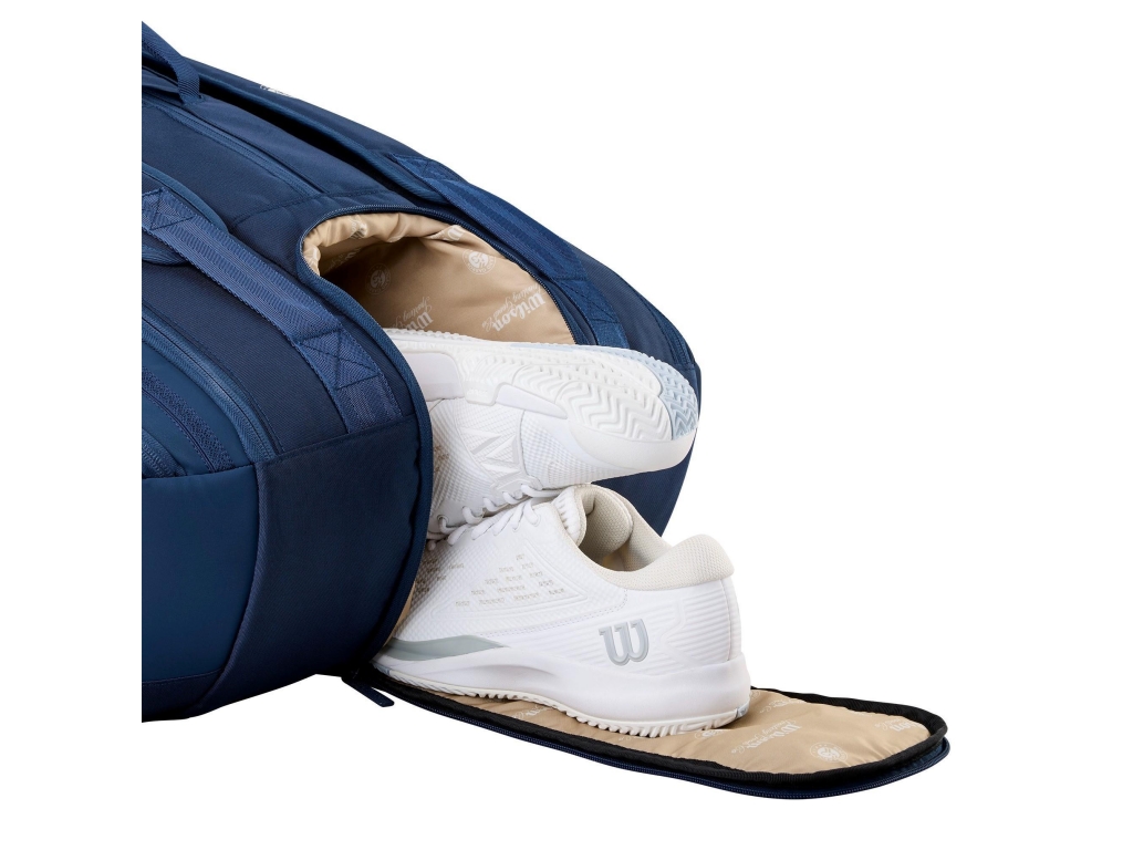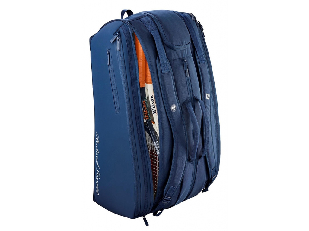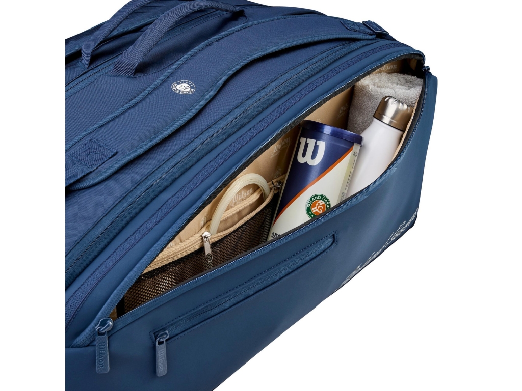 Wilson Roland Garros 2026 Session Soiree Super Tour 15PK z novej kolekcie vytvorený pri príležitosti antukového Grand Slamu Roland Garros. Je navrhnutý tak, aby poskytoval maximálny komfort pre hráčov! Tašky Wilson Super Tour majú množstvo vreciek a priehradiek, aby sa do nich vošlo všetko, čo nie len turnajový hráči budú potrebovať na kurte aj mimo neho. Zmestí sa do nej až 15 rakiet bez obalu.