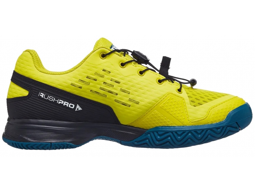 Model obuvi Wilson Rush Pro JR s technológiou 2D-F.S strategicky umiestnenou v prednej časti topánky pre lepšiu podporu, zvýšenú bočnú stabilitu a ovládanie. Špeciálna vložka R-dst s reaktívnou hustotou v oblasti prstov a päty ponúka vynikajúce odpruženie a odraz.