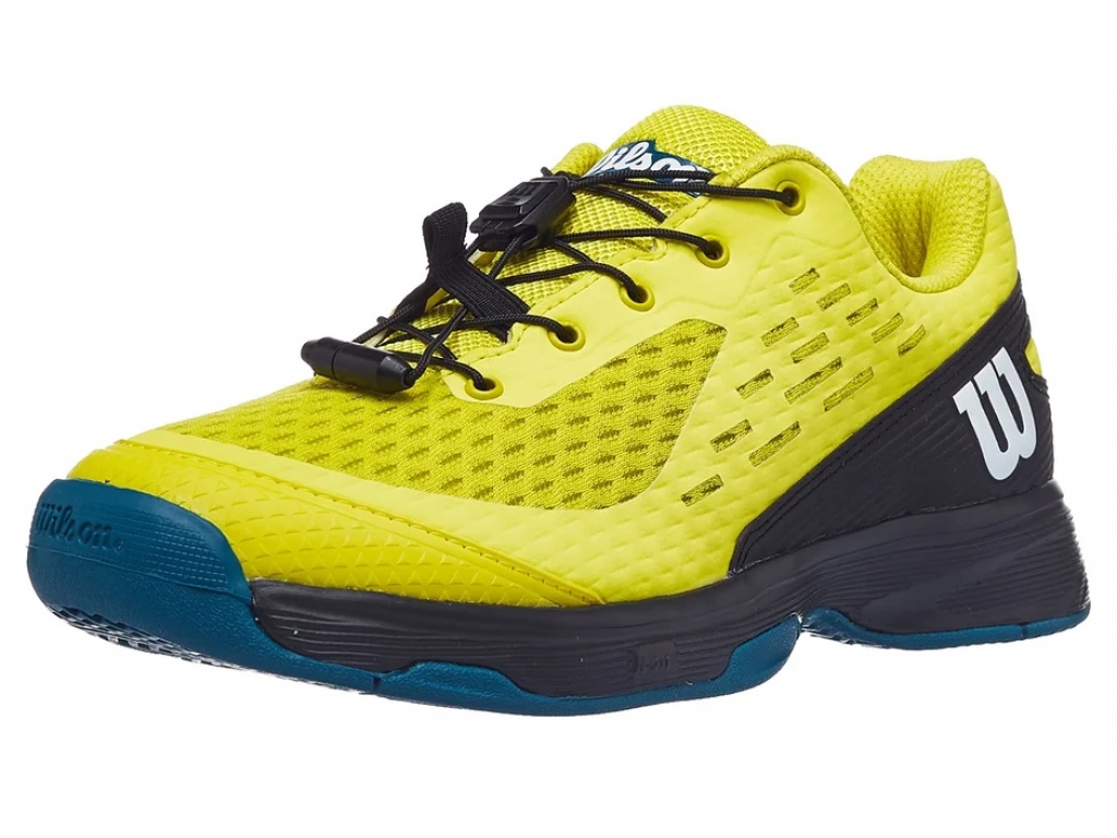 Juniorská tenisová obuv Wilson Rush Pro JR 4.0 QL pre pokročilých a súťažných hráčov, ktorí chcú zlepšiť prácu nôh. Ľahká, odolná a kvalitná topánka zo syntetickej kože je vhodná na všetky druhy povrchov, kde poskytuje celkovú stabilitu a citlivosť.