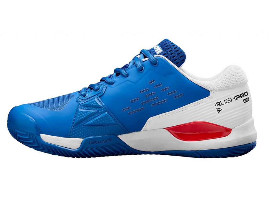 Wilson Rush Pro Ace Clay si zachováva svoju povesť najvyššej výbušnosti a stability, ale teraz má atletickejší a zúžený dizajn. Obsahuje 4D Support Chassis, oblúkovú konštrukciu v podrážke pre silné a agresívne pohyby smerom k sieti. Minimálne vrstvený zvršok zvyšuje extra priedušnosť, čo z neho robí ideálnu topánku, ktorá spája silu a pohodlie pre hráčov, ktorí hrajú agresívne a radi útočia na sieť.