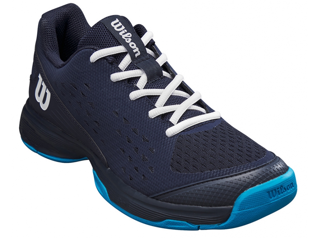 Juniorská tenisová obuv Wilson Rush Pro JR L pre pokročilých a súťažných hráčov, ktorí chcú zlepšiť prácu nôh. Ľahká, odolná a kvalitná topánka zo syntetickej kože je vhodná na všetky druhy povrchov, kde poskytuje celkovú stabilitu a citlivosť.