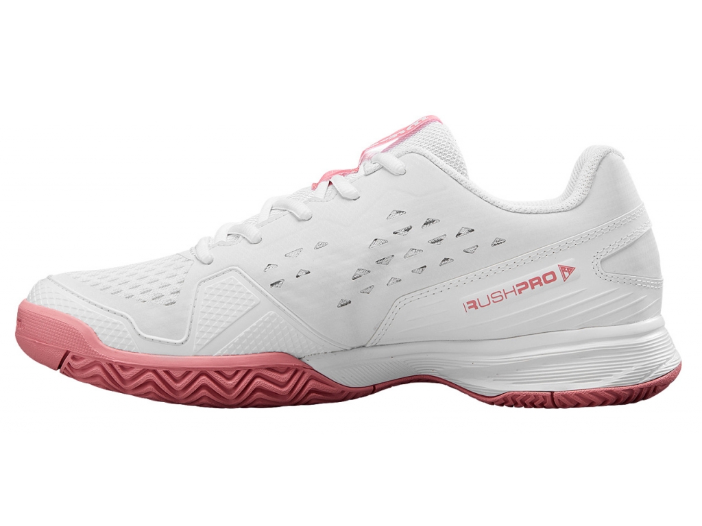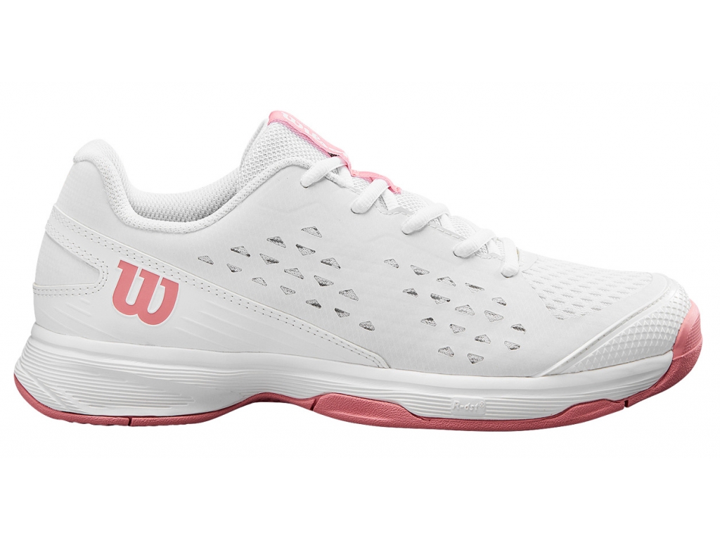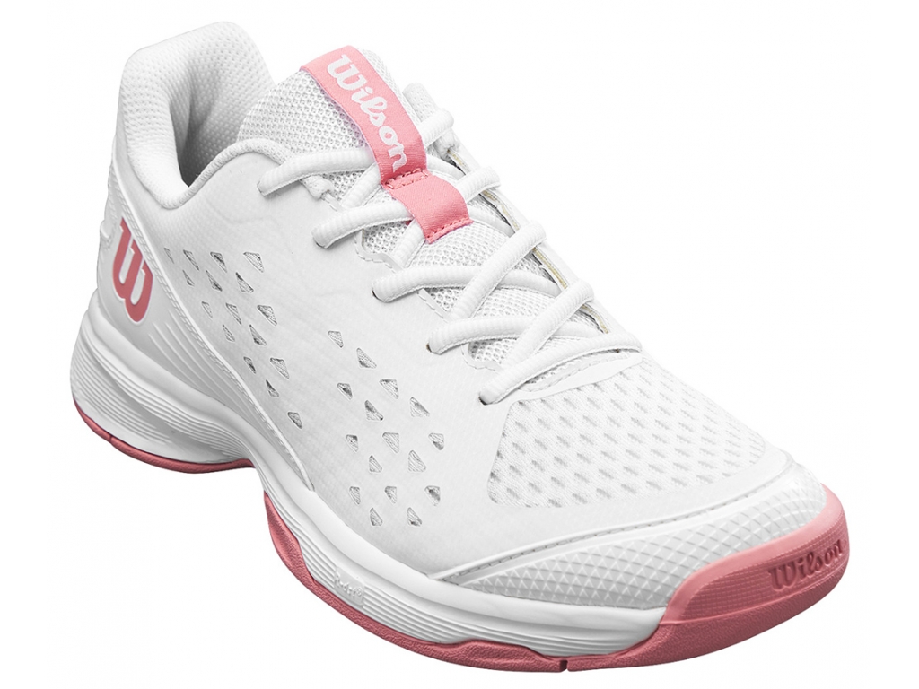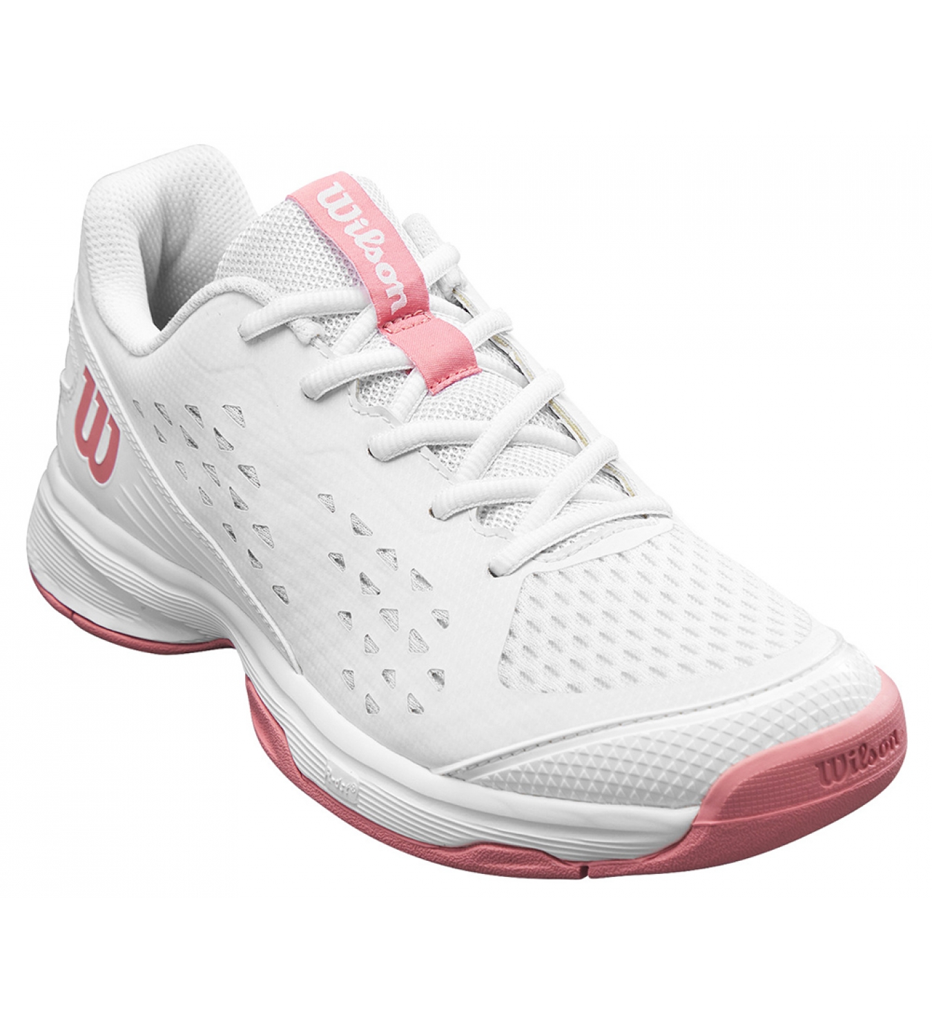 Juniorská tenisová obuv Wilson Rush Pro JR L pre pokročilých a súťažných hráčov, ktorí chcú zlepšiť prácu nôh. Ľahká, odolná a kvalitná topánka zo syntetickej kože je vhodná na všetky druhy povrchov, kde poskytuje celkovú stabilitu a citlivosť.