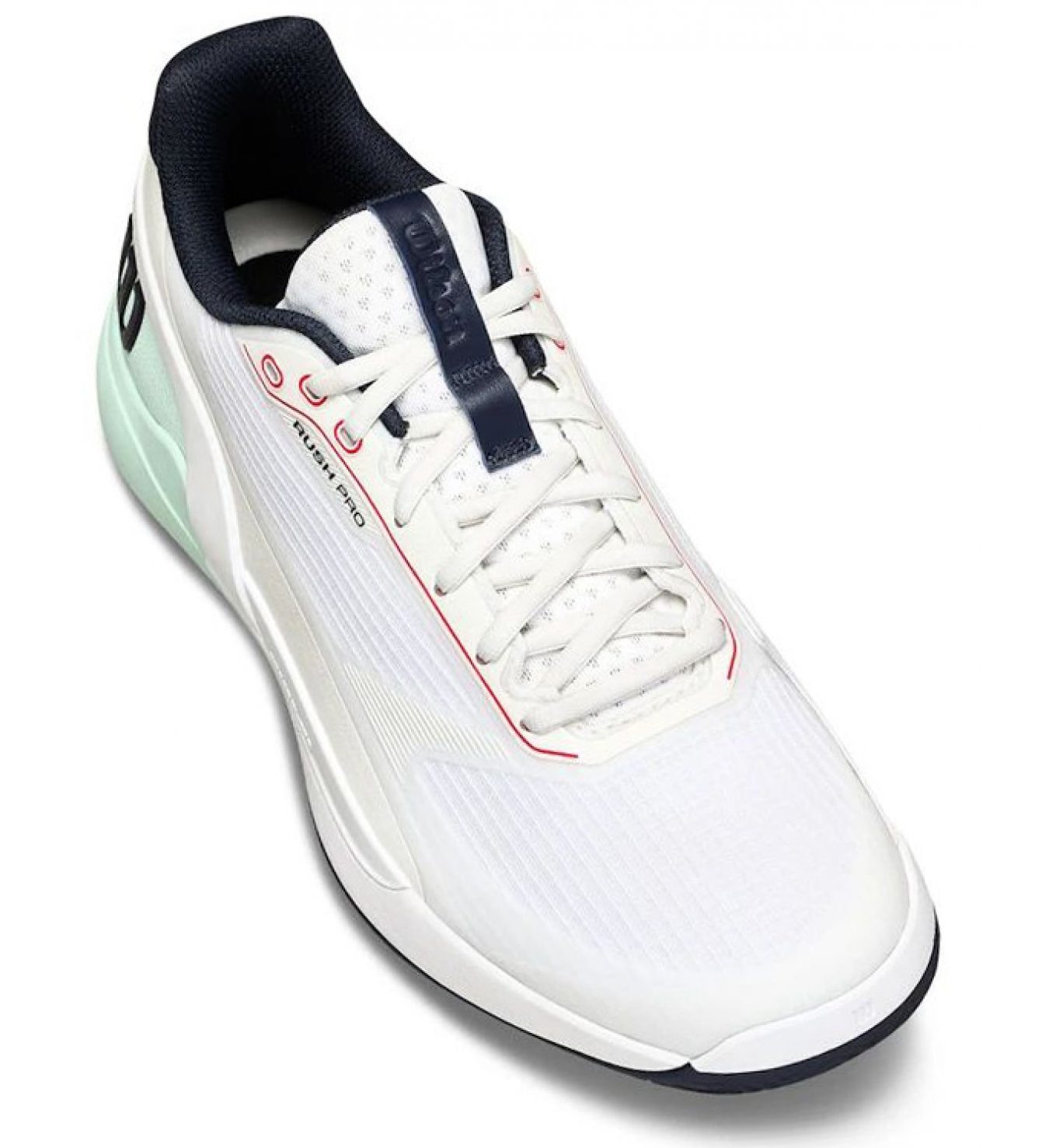 Wilson Rush Pro 5 stavia na ikonickom modely Rush Pro 4.5 s vylepšeným tlmením, dynamikou a odolnosťou proti oderu. Prináša vylepšenú stabilitu mediálnej časti, lepšiu odolnosť na kritických miestach a vylepšenú priedušnosť vrchného materiálu. Bočná časť výstuže sa tiahne od päty k prednej časti topánky a zlepšuje kontrolu nad dynamickým pohybom, vytvára vynikajúcu stabilitu. Minimálne vrstvený zvršok zvyšuje extra priedušnosť, čo z neho robí ideálnu topánku, ktorá spája silu a pohodlie pre hráčov, ktorí hrajú agresívne a radi útočia na sieť.