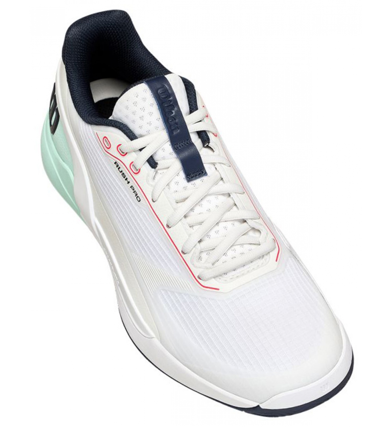 Wilson Rush Pro 5 Clay stavia na ikonickom modely Rush Pro 4.5 s vylepšeným tlmením, dynamikou a odolnosťou proti oderu. Prináša vylepšenú stabilitu mediálnej časti, lepšiu odolnosť na kritických miestach a vylepšenú priedušnosť vrchného materiálu. Bočná časť výstuže sa tiahne od päty k prednej časti topánky a zlepšuje kontrolu nad dynamickým pohybom, vytvára vynikajúcu stabilitu. Minimálne vrstvený zvršok zvyšuje extra priedušnosť, čo z neho robí ideálnu topánku, ktorá spája silu a pohodlie pre hráčov, ktorí hrajú agresívne a radi útočia na sieť.