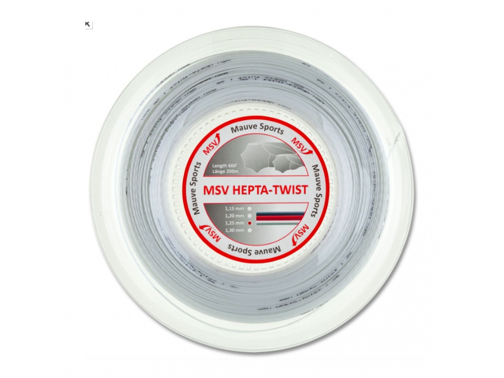 Polyester tretej generácie. Výplet MSV HEPTATWIST ponúka neuveriteľnú kontrolu, najmä pri spinových úderoch, ale tiež vynikajúcu silu a trvanlivosť. Materiál: monofil / ko-polyester. Sedemuholníkový profil pre väčšiu rotáciu - spletené poly vlákna.